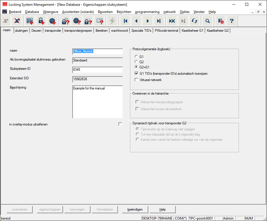 - Vrij veld voor de beschrijving van het sluitsysteem