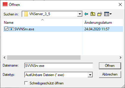 De SVVNSvr.exe wordt samen met de CommNode-server geïnstalleerd. Standaardindex: (C:\Programma's(x86)\SimonsVoss\VNServer_x_x)