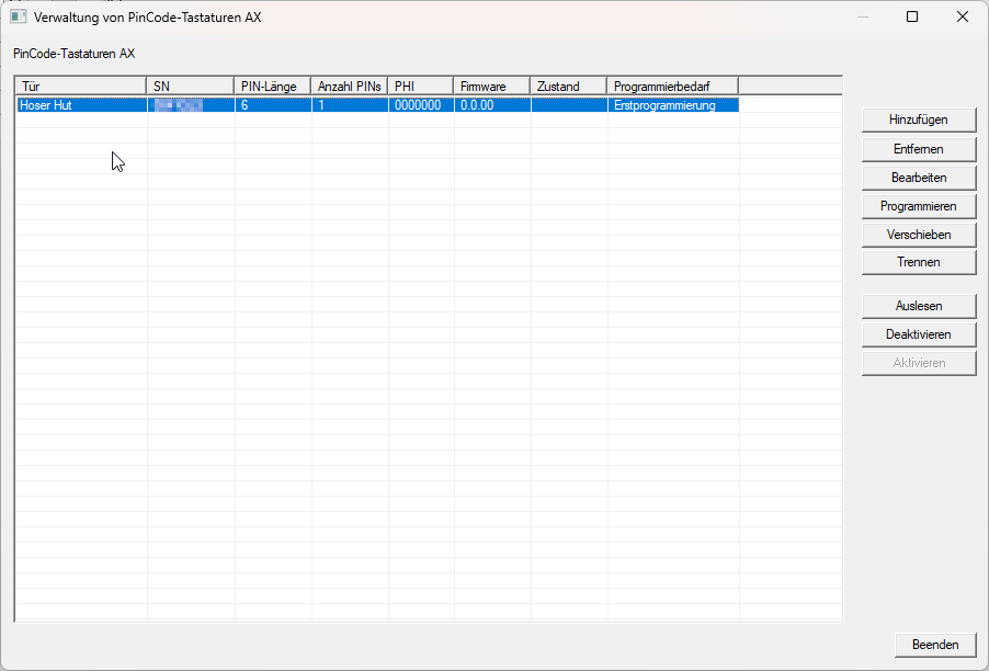 - Markeer de PinCode-toetsenbord AX, waarvoor u pincodes wilt aanmaken.