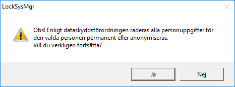 - Personuppgifterna för den markerade personen raderas eller anonymiseras.