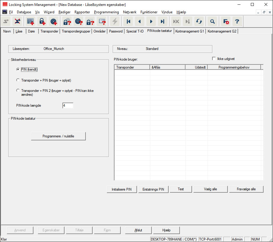 For oprettelse af pin-kode-terminalen henvises til dokumentationen "Pin-kode-terminal håndbog", som findes på hjemmesiden: