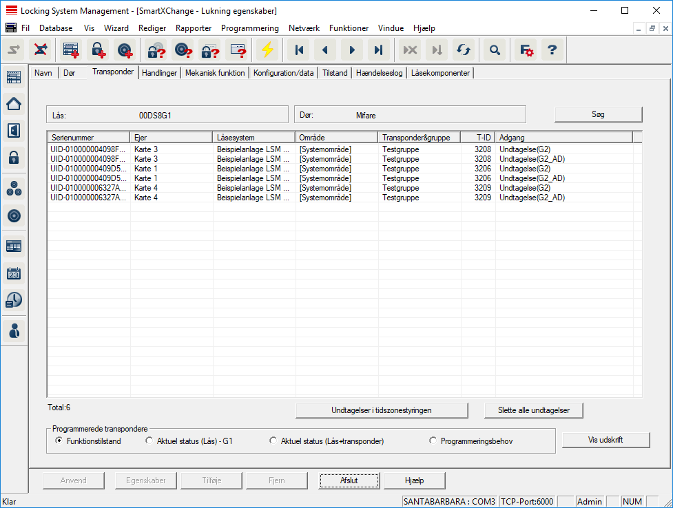 - Viser alle berettigede transpondere for låsen i en detaljeret liste.