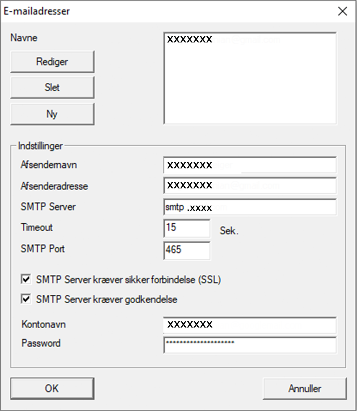 - Indtast alle SMTP-indstillinger for din e-mailudbyder.