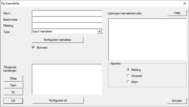 Felterne Melding og Alarmtrin er relevante, hvis du bruger en reaktion af typen Netværksnyheder .