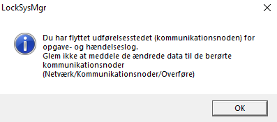 - Din LSM informerer dig om, at du har ændret det kommunikationsknudepunkt, der er ansvarlig for task-/eventmanageren