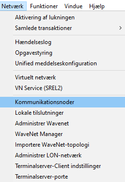 Både det tidligere kommunikationsknudepunkt og det nye kommunikationsknudepunkt påvirkes. - Vælg via Netværk menupunktet .