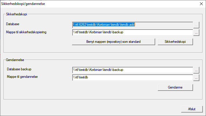 - Vinduet Sikkerhedskopi/gendannelse lukkes.