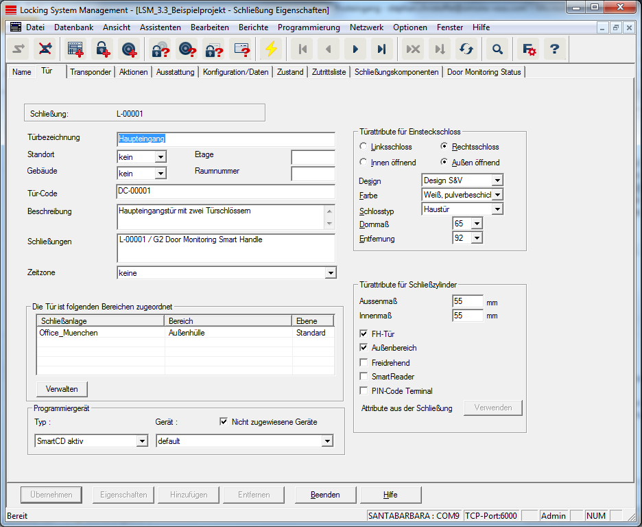 - Gebäude, in dem sich die Tür befindet. (Gebäude müssen bereits vorher angelegt worden sein.)