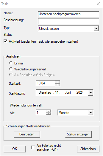 - Wählen Sie aus, ob Sie den Task einmalig oder regelmäßig ausführen wollen (Beispiel:
