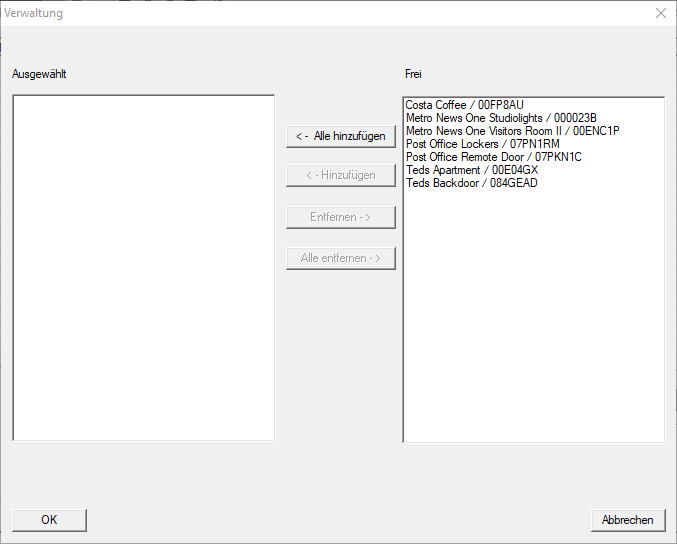 - Fenster Verwaltung öffnet sich und bietet Schließungen zur Auswahl an.
