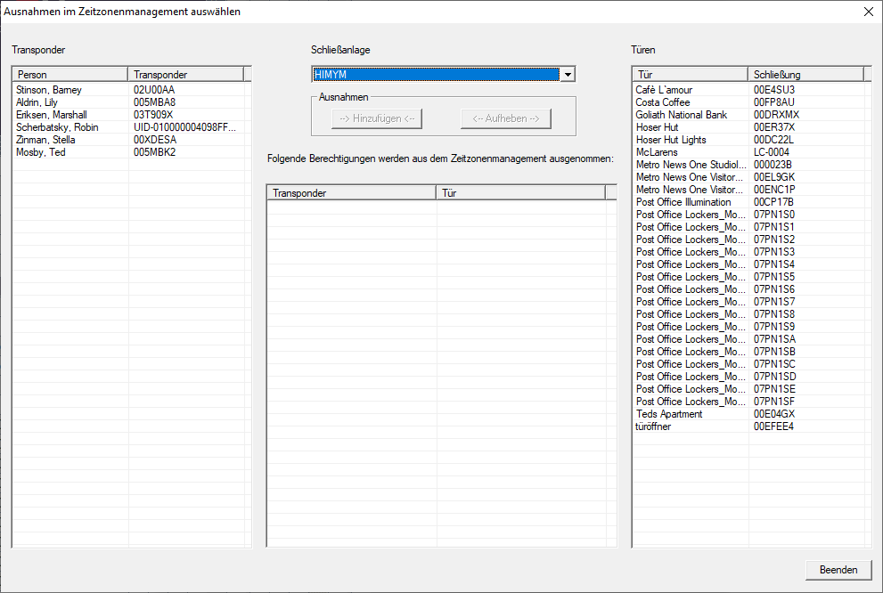 - Markieren Sie im Bereich Türen die Schließungen der Berechtigungen, deren Zeitgruppe ignoriert werden soll (Mehrfachauswahl möglich).