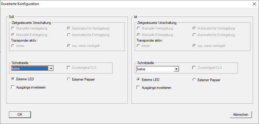 - Die linke Seite zeigt den Soll-Zustand der Schließung - also der in der LSM Software konfigurierte und gewollte Zustand.