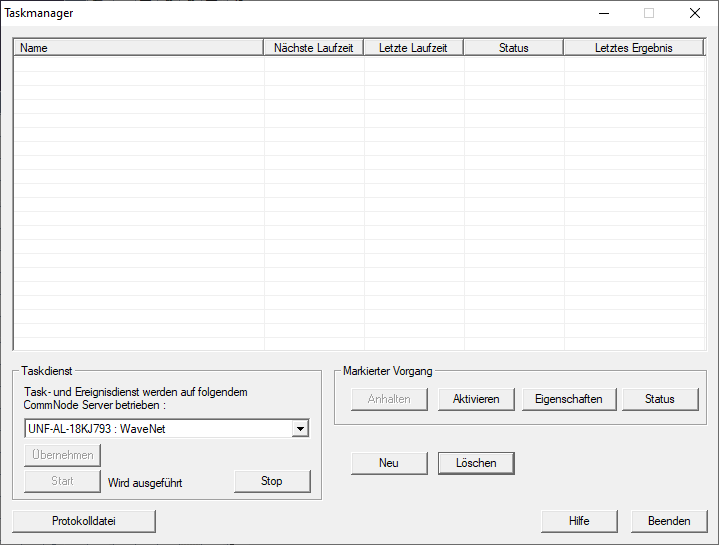 Task- und Ereignismanager funktionieren nur, solange der hier eingestellte Dienst läuft.