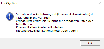 - Ihre LSM weist Sie darauf hin, dass Sie den Kommunikationsknoten, der für den Task-/Ereignismanager zuständig ist, geändert haben.