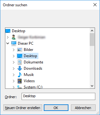 - Fenster Ordner suchen öffnet sich.