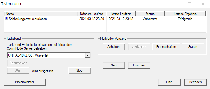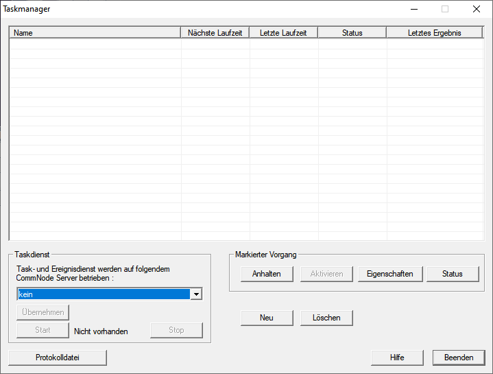 - Stellen Sie sicher, dass im Bereich Taskdienst im Dropdown-Menü der passende CommNode ausgewählt ist.