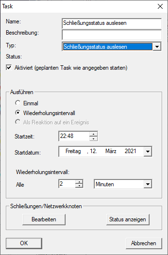 - Auszulesende Schließungen programmiert und vernetzt (siehe Erstellen eines WaveNet-Funknetzwerks und Einbindung einer Schließung).
