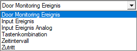 Im Fenster Neues Ereignis stehen Ihnen im Dropdown-Menü verschiedene Ereignisse zur Verfügung.