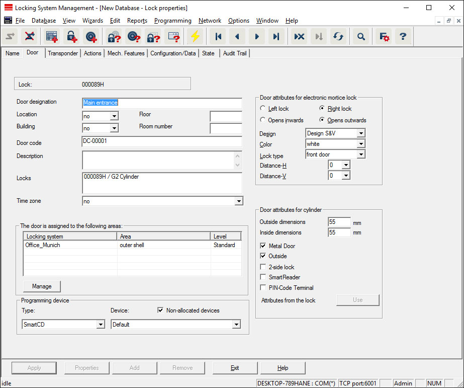 - Location where the door is situated. (Locations need to have been added beforehand)