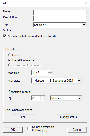 - The task is only performed for the locking devices selected here.