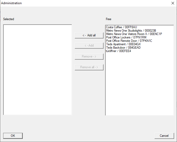 - Use the ← Add buttons to add the locking devices to the task.