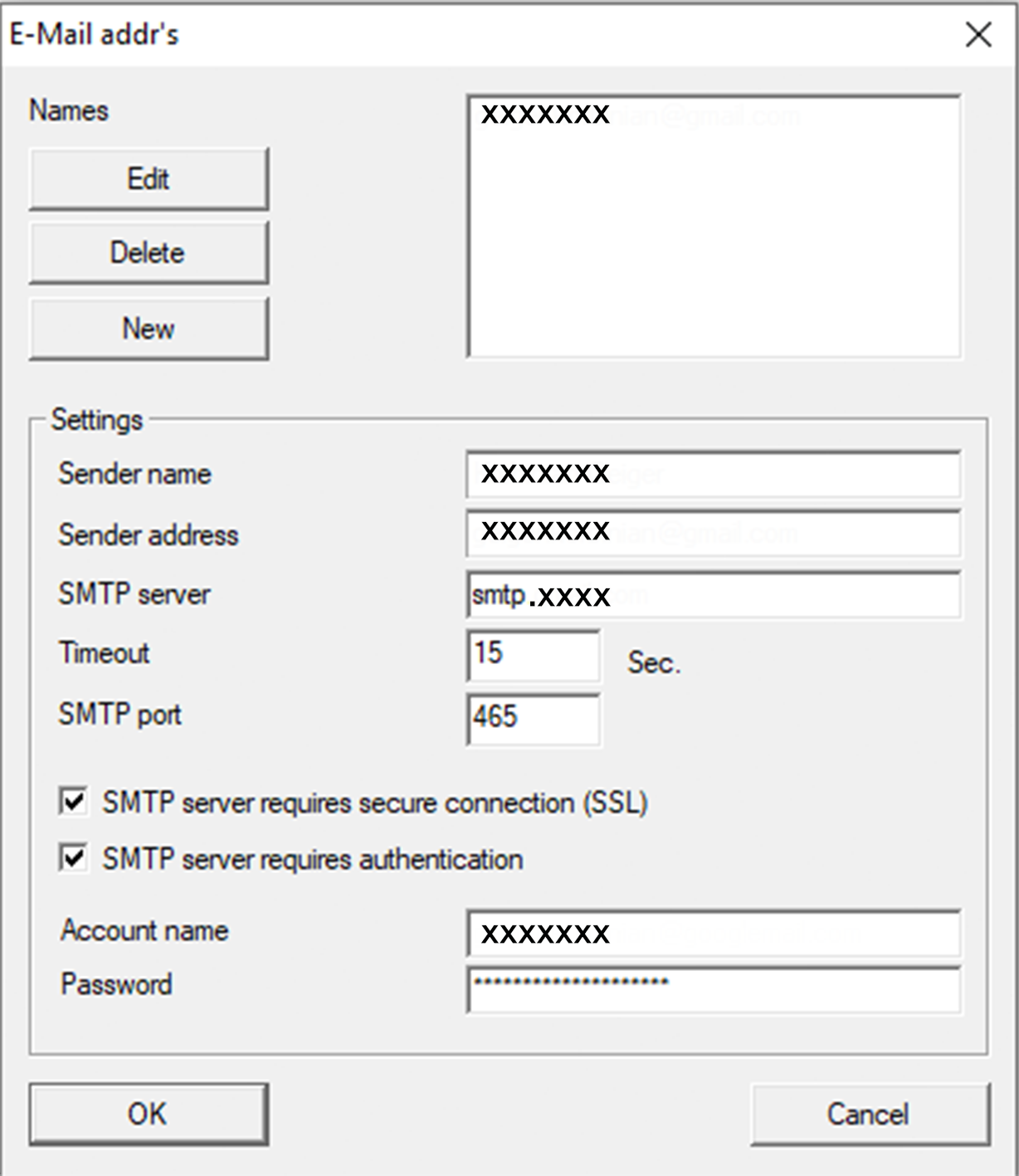 - The E-Mail addr's window will open.