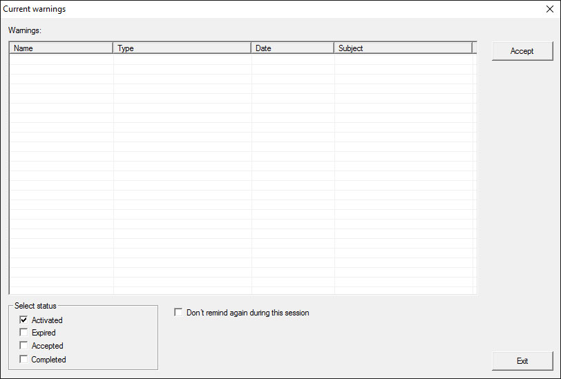 - Expired warnings are those warnings for which the pre-set time interval has already expired.