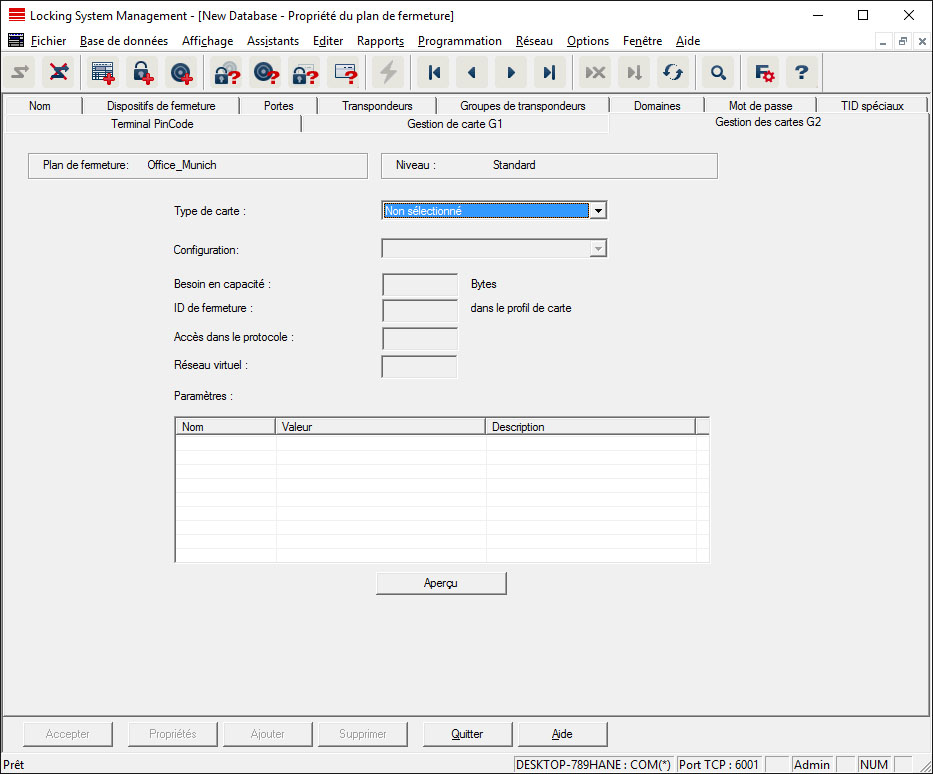 Procédez ici à un réglage avancé des propriétés et des paramètres de vos cartes G2 (Voir Gestion des cartes).