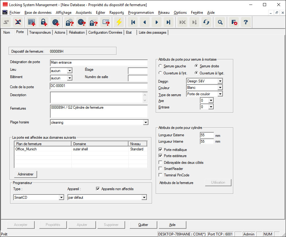 - Bâtiment, dans lequel se trouve la porte. (Les bâtiments doivent avoir été créés au préalable.)