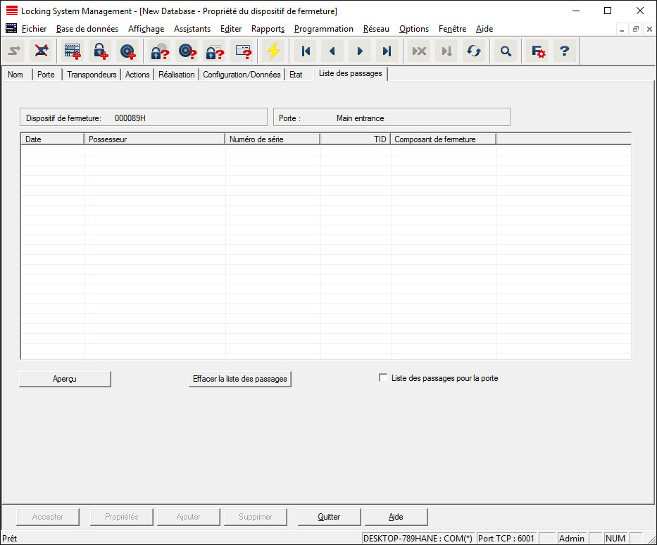 - La liste d'accès s'affiche et est enregistrée automatiquement. Vous pouvez à présent l’afficher à tout moment via l’onglet liste d'accès qui se trouve dans les propriétés de la fermeture.