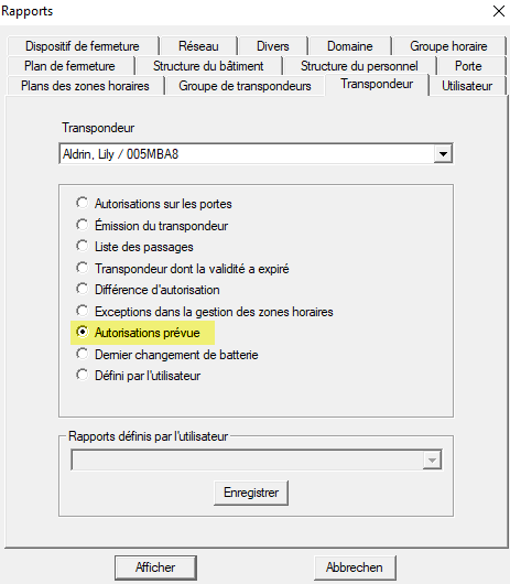 Les autorisations ainsi planifiées ne sont pas enregistrées au préalable sur le support d’identification ! Le comportement est comparable à celui d’un administrateur de système de fermeture qui se rend sur l’ordinateur au moment prévu et définit l’autorisation manuellement.