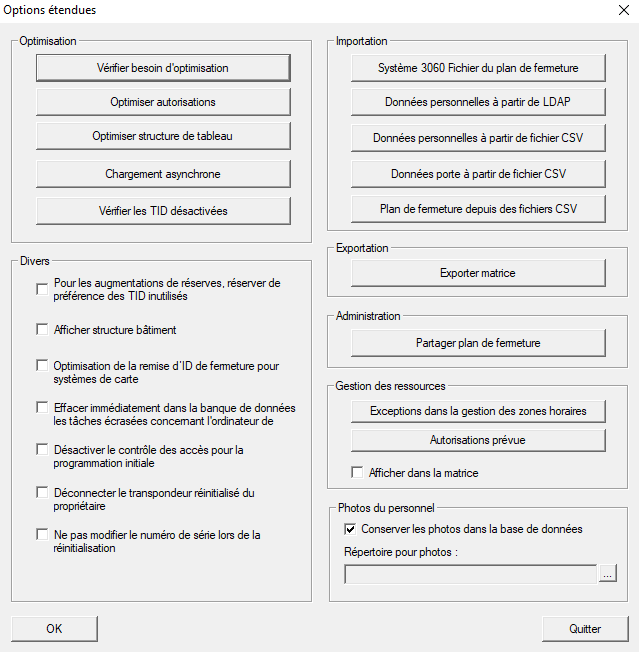 - La fenêtre Options étendues s’ouvre.