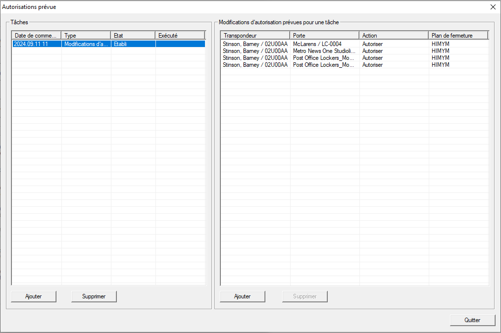 - Votre logiciel LSM affiche les autorisations planifiées dans la matrice. Au moment réglé, celles-ci sont activées ou bloquées et un besoin de programmation apparaît.