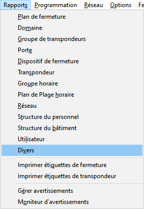 - La fenêtre Rapports s'ouvre avec l'onglet Divers.