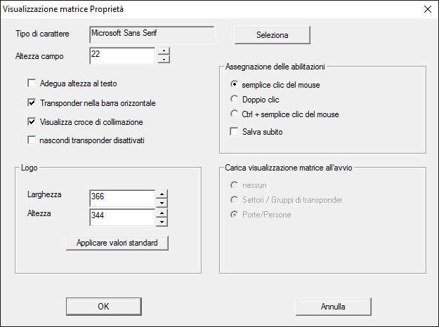 Le impostazioni relative alla vista standard possono essere adattate mediante la barra menu alla voce Vista/Impostazioni vista matrice.