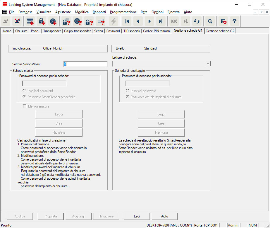 Gestione schede G1 - LSM 3.5 SP3 Business + Prof.Specificare qui le proprietà e le impostazioni avanzate delle schede G1 (Vedi Gestione schede).