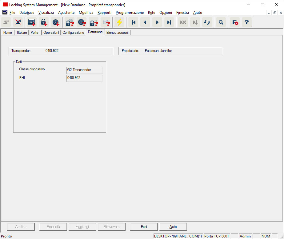 Programmazione del transponder