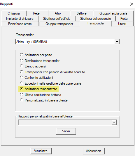 - Selezionate tramite Rapporti la voce .