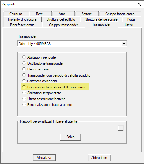 Le autorizzazioni con gruppi temporali ignorati possono essere emesse di volta in volta per ciascun mezzo di identificazione come report: