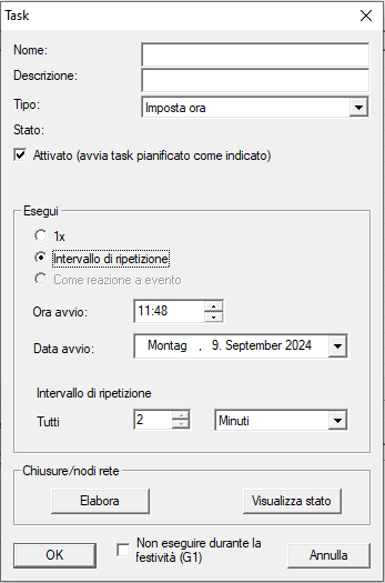 - Selezionate nel menu a discesa , il task che desiderate eseguire con questo Task (esempio: Imposta ora).