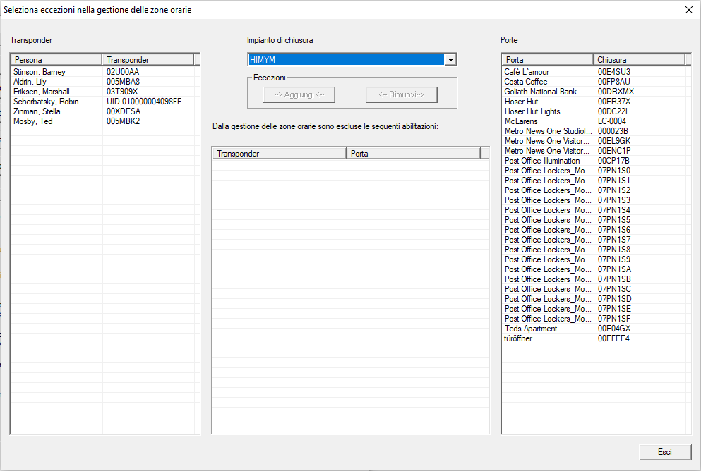- Selezionate nel menu a discesa il sistema di chiusura, in cui si trovano le autorizzazioni per le quali deve essere ignorato il gruppo temporale.
