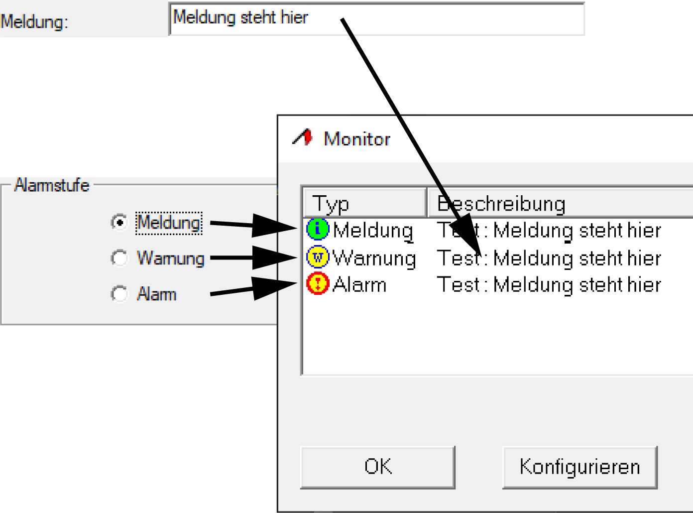EventAgent visualizza le informazioni Livello di allarme e Messaggio dalla finestra Nuovo evento.