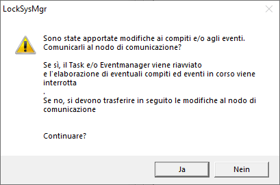 - Il vostro LSM interrompe ev. attività di Task ed Event Manager in corso e trasmette le impostazioni modificate.