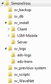 Maak tijdens de installatie de volgende mappenhiërarchie aan in de hoofddirectory (bijv. C:\SimonsVoss):