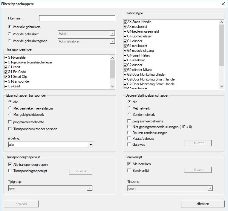 Met de introductie van filters is het beheer van een sluitsysteem nog gemakkelijker geworden. U kunt verschillende filteropties kiezen en deze filters beschikbaar maken voor diverse personen of groepen van personen. Door het zichtbaar maken van extra kolommen krijgt u niet alleen meer informatie, maar met de filterfunctie kunt u de weergaven ook heel overzichtelijk houden.