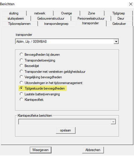 De zo geplande rechten worden niet vooraf in het identificatiemedium opgeslagen! Het gedrag is vergelijkbaar met een sluitsysteembeheerder die op het geplande tijdstip naar de computer gaat en de rechten handmatig instelt.