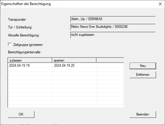 - Uw LSM toont in de matrix geplande rechten. Op het ingestelde tijdstip worden deze geactiveerd of geblokkeerd en ontstaat programmeerbehoefte.