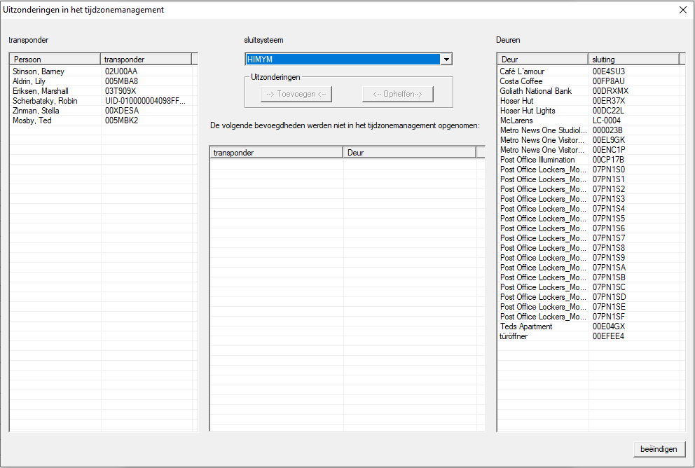 - Markeer in het bereik Deuren de sluitelementen van de rechten waarvan de tijdgroep moet worden genegeerd (meervoudige selectie mogelijk).