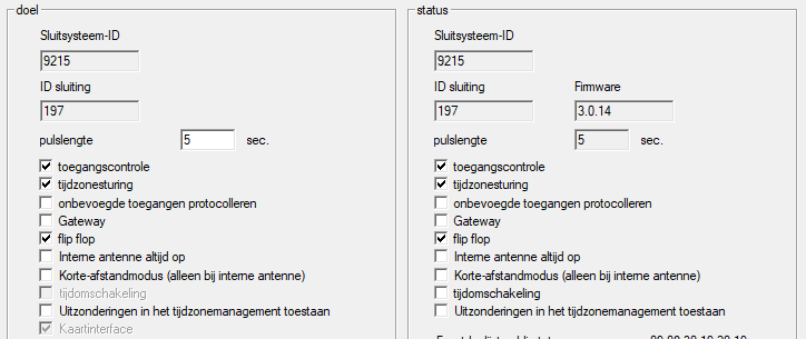 - aan de rechterzijde is de actuele status van het sluitelement weergegeven (doel) – d.w.z. de status die het laatst geprogrammeerd is.