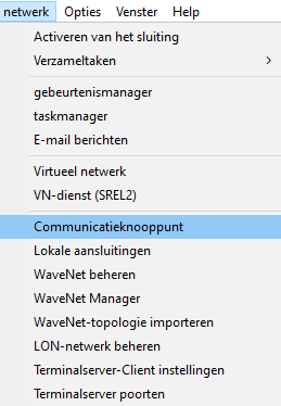 Dit betreft zowel het oude communicatieknooppunt als het nieuwe communicatieknooppunt. - Selecteer netwerk via de invoer.